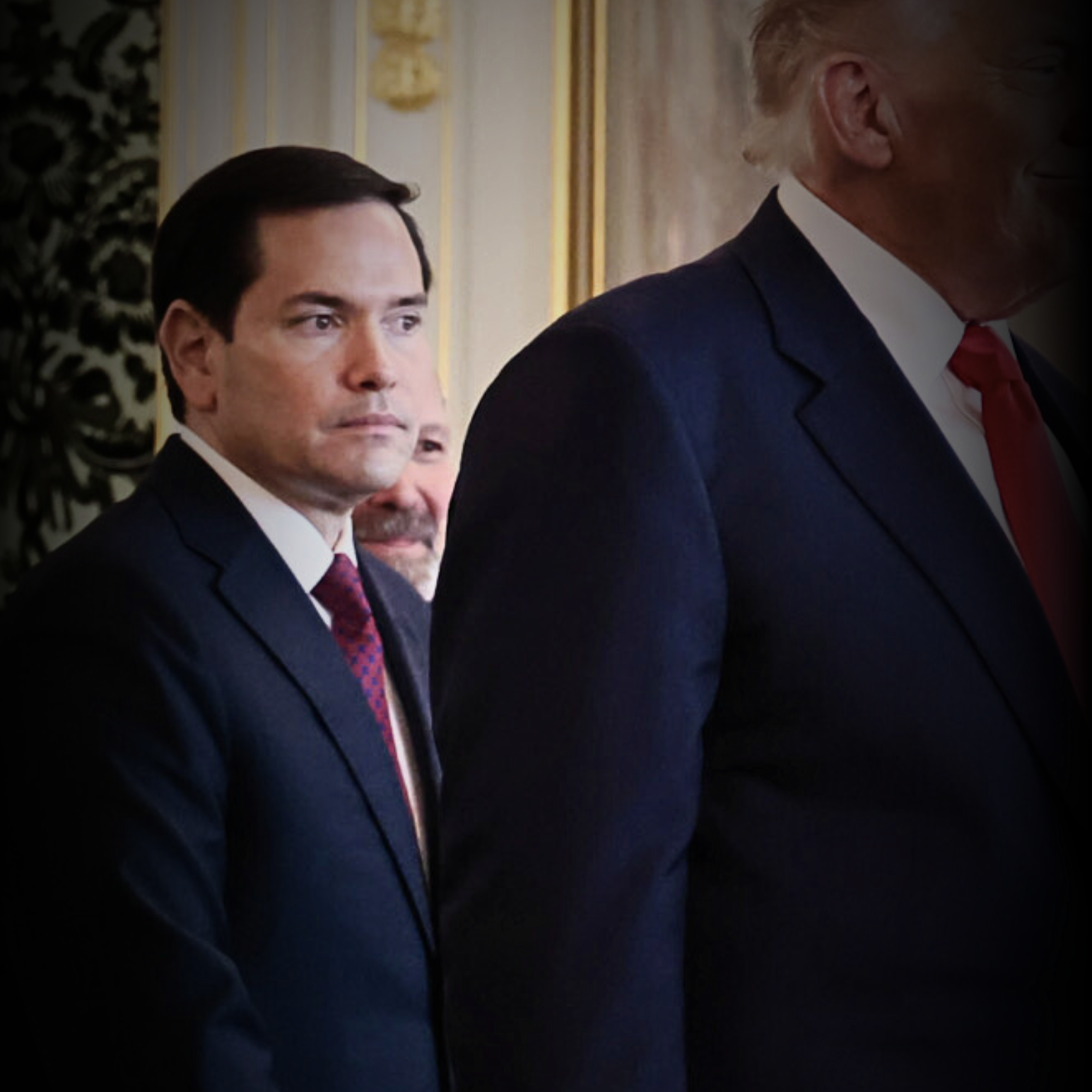 Marco Rubio and Donald Trump in Akasaka Palace in 2025. Photo by Cabinet Secretariat, via Wikimedia Commons (CC BY 4.0). Modified.